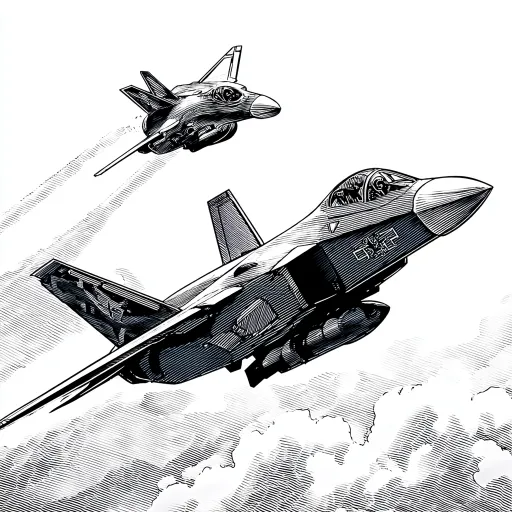 Midjourney Bot 更新时间:2026-01-16 00:08https://images.gogpt.vip/aigf/m_origin/20260116/1193071/sdhgs7qtxn4bb6lv.png 按照我发的图,把它的色块和线条改变的更清晰分明。不改变图片中的两架战斗机角度和造型 --ar 1:1 --v 7 --stylize 100 --iw 2