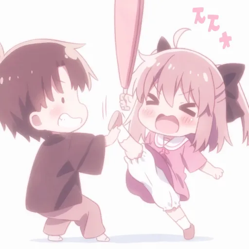 Midjourney Bot 更新时间:2026-01-15 00:12两个赤壁人物,非常可爱,一个男孩和一个女孩,小情侣。女孩伸出一只脚踢向男生,男生傻傻的站着。女孩穿着粉色的水手服,扎着黑色低双马尾,蝴蝶结发带,闭着眼睛笑着。男孩深棕色短发,穿着黑色的外套和棕色的裤子,黑色眼睛。 --ar 1:1 --c 100 --stylize 300 --niji 6 --profile sqzvlzq