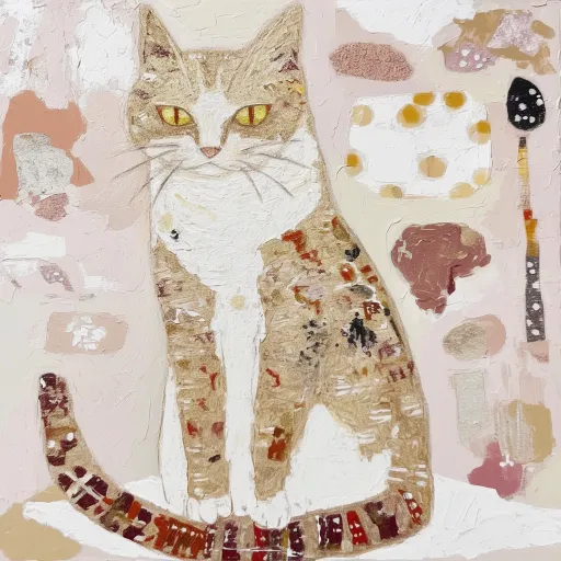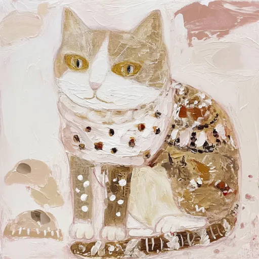 Midjourney Bot 更新时间:2026-01-15 00:16https://images.gogpt.vip/aigf/m_origin/20260115/1703140/fuojaxsn5lraaycw.jpg 画面中是一只坐着的猫咪,身体呈现出浅棕色和白色的斑纹,眼神灵动。猫咪的衣纹和背景相融合,整体风格显得抽象而富有艺术感。背景采用温暖的米色和粉色,点缀着一些简单的图案,增添了层次感。猫咪的尾巴有明显的条纹,整体构图和谐,营造出一种温馨和宁静的氛围。 --ar 1:1 --stylize 100 --iw 1.75 --niji 6 --sref https://images.gogpt.vip/aigf/m_origin/20260115/1703140/fuojaxsn5lraaycw.jpg --sw 333