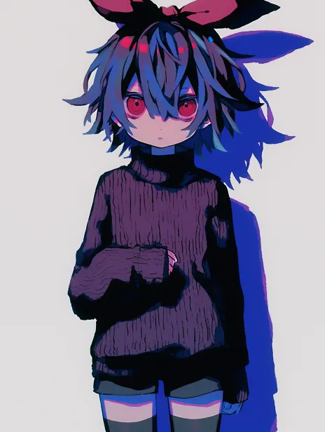 Midjourney Bot 更新时间:2026-01-15 00:18可爱的小男孩,角色设计,人物设计,全身,立绘,黑色短发,头上戴着红色蝴蝶结发箍,红色眼睛,右眼戴着白色眼罩,凌乱的头发,长鬓角,长刘海,穿着红色高领毛衣,萌袖,黑色短裤,黑色过膝袜,长筒靴 --ar 3:4 --stylize 100 --niji 6 --sref https://images.gogpt.vip/aigf/m_origin/20260115/2026762/1eoprd35li62arau.jpg