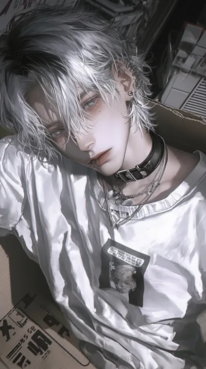 Midjourney Bot 更新时间:2026-01-13 00:00一位英俊的男性蜷缩侧躺在巨大的棕色纸箱中,9:16竖构图特写。他拥有蓬松的白色短长发,发丝细腻有光泽。双眼是清澈明亮的蓝宝石色,眼神懵懂而好奇,直视镜头。身材壮硕,肌肉线条分明,但皮肤是略带冷调的白皙。**他的颈部佩戴着一个简约的白色机械项圈,项圈材质光滑,有一排微小的蓝色LED灯沿项圈等距排列,发出柔和而稳定的呼吸光。** 他身上松散地缠绕着干净的白色绷带,绷带缠绕得十分随意,大量绷带条已经松开,滑落并散落在纸箱内和他的身体上。纸箱内部可见皱褶的纸板质感,里面也散落着零星的绷带。温暖的晨光从侧面窗户斜射进来,光线掠过他的项圈和皮肤,照亮空气中的微尘,形成柔和的光晕和镜头光斑。背景是虚焦的暖色木质地板。风格:顶级游戏CG角色立绘,科幻与艺术的结合,厚涂风格,油画质感,笔触明显,皮肤纹理、项圈金属/塑料质感、绷带纤维等细节超高清,面部表情极度细腻,真实感与艺术感结合,大师级插画。2k --ar 9:16 --stylize 250 --niji 6 --sref https://images.gogpt.vip/aigf/m_origin/20260112/2016197/pfgmtqswzfoc8ft1.jpg --cref https://images.gogpt.vip/aigf/m_origin/20260112/2016197/pfgmtqswzfoc8ft1.jpg --cw 20 --sw 147