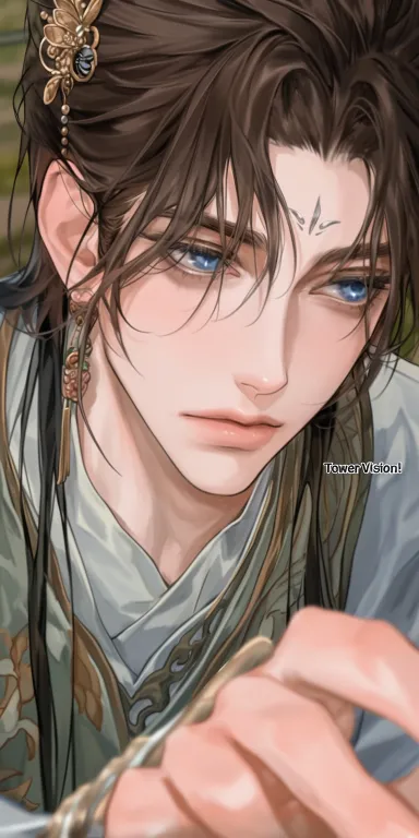 Midjourney Bot 更新时间:2026-01-13 00:01帮我生成一个穿着十分清冷蓝色汉服,汉服上一些金属配饰,的男子。蓝色瞳孔!棕色长发。头上银饰,蓝色发光莲花。皮肤白皙,长相俊美,仪表堂堂,背景是古风碉楼小筑,(参考古装电视剧楼)男人手里拿着一把剑!清冷感画风:日系细腻的半厚涂。镜头:全身,远景,仰视图。腰部以上!不要发光的点!鱼眼视角。日式水彩画风!远景! --ar 1:2 --c 2 --stylize 100 --niji 6 --sref https://images.gogpt.vip/aigf/m_origin/20260112/1983195/kskse6o00tggffpi.jpg --profile 8rfr9yc