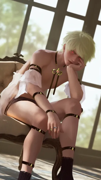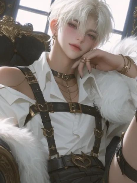 Midjourney Bot 更新时间:2026-01-13 00:01男性角色,CG概念艺术,厚涂绘画风格,一个黄色头发的少年,长相清秀,少年感,眼睛里有着暗红色爱心形状,穿着一件白衬衫和华丽的背带短裤,黑色腿环,他坐在华丽的椅子上,手托着脸颊,表情病娇,背景在落地窗,镜头视角从上到下,超高分辨率,8K画质,精细的纹理细节,光线追踪,逼真的材质表现,细腻的阴影效果 ,营造出阴森且华丽的氛围 。 --ar 9:16 --style raw --weird 3000 --stylize 500 --niji 6 --profile en9u93v