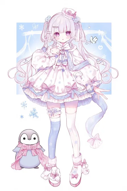 Midjourney Bot 更新时间:2026-01-13 00:18https://images.gogpt.vip/aigf/m_origin/20260110/1978477/30fbl8x7yeq9nccb.jpeg https://images.gogpt.vip/aigf/m_origin/20260103/1978477/158kq38owas0rrrk.png https://images.gogpt.vip/aigf/m_origin/20260103/1978477/p450epczlt5pvpyb.png https://images.gogpt.vip/aigf/m_origin/20260104/1978477/4d6m9qyig09swd5o.jpeg 淡蓝色头发扎着两个低马尾,戴着雪花发卡。头上戴着企鹅头发饰。穿着蓝白色水手服洛丽塔。围着一个浅蓝色围巾,系成一个蝴蝶结,裙子上印着企鹅和雪花印花。一条腿穿着长筒袜,上面穿了一个毛茸茸腿环,另一条腿围着蓝色腿环。穿着雪地靴,鞋子上有两个毛球挂件。手里拿着一个小企鹅玩偶。清晰精致的线条。高清画质,最佳配色。 --ar 2:3 --stylize 15 --niji 6 --sref https://images.gogpt.vip/aigf/m_origin/20251223/1978477/hzg9tc1gfnaozv7o.png https://images.gogpt.vip/aigf/m_origin/20260103/1978477/tzh2rekrqa64atl0.png https://images.gogpt.vip/aigf/m_origin/20260104/1978477/4d6m9qyig09swd5o.jpeg https://images.gogpt.vip/aigf/m_origin/20260103/1978477/p450epczlt5pvpyb.png https://images.gogpt.vip/aigf/m_origin/20260110/1978477/n91iio7zx0jyhlnp.jpeg --sw 28