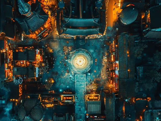 Midjourney Bot 更新时间:2026-01-13 00:21场景:国内任意城市夜景全貌; 视角:俯视视角; --ar 4:3 --v 6.1 --stylize 100