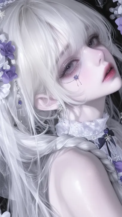 Midjourney Bot 更新时间:2026-01-13 00:22一个甜美浪漫的女孩,白色长发,公主切发型,空气刘海,侧马尾蜈蚣辫长发,大动漫眼睛,眼睛里有光,精致柔和的五官,精致的妆容,精致的脸部特征,穿着一件淡紫色香云纱旗袍,白紫色围巾,开心,甜美,微笑,可爱,皮肤色调为白色,雪花飘飘,浪漫的现实风格描绘和精心绘制的背景,动漫艺术风格,童话卡通风格,具有闪亮和光滑的特点,超高清,细节优化,朦胧感,白色色调 --ar 9:16 --style raw --stylize 200 --niji 6 --profile ii7atz1 5xbwpmy