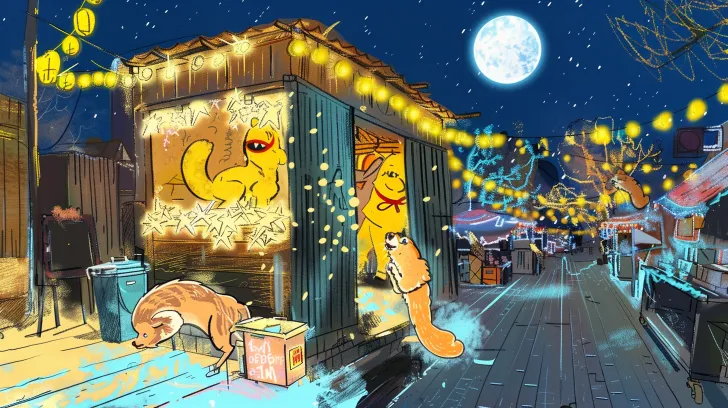 Midjourney Bot 更新时间:2026-01-13 00:22https://images.gogpt.vip/aigf/m_origin/20260113/2013283/7kf3wof2ccfjn4i4.jpeg The content in the picture remains unchanged and is now in hand drawn style, creating a night market atmosphere. Jim Stranko, Dean Ellis, Dan Cross, --ar 16:9 --v 6.0 --seed 862412 --stylize 120 --iw 1.25 --no photorealism,3d render,extra people,animals,modern text,qr code,oversaturated