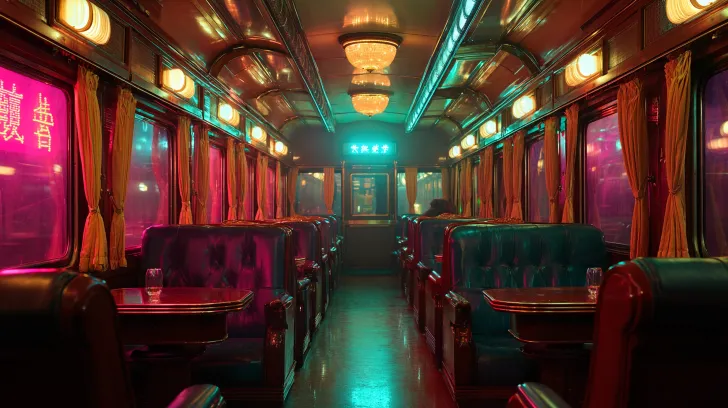 Midjourney Bot 更新时间:2026-01-10 00:04强烈光影,电影质感,不要有任何大人物,不要黑白场景,场景丰富饱满 绿色复古列车车厢(无人物,王家卫港风) 画面描述: 一列墨绿色调的复古列车车厢内部,空无一人。皮革座椅是深橄榄绿,木质装饰泛着旧时光的油润光泽。强烈而情绪化的光影在车厢内流淌,如同电影《花样年华》中的色调与构图,光影绚烂,色彩浓郁而怀旧。 核心描述词(可直接复制): 王家卫电影风格,港风胶片感,墨绿色复古列车车厢内部,空无一人,强烈戏剧性光影。主光: 窗外不断掠过的、冷暖交替的霓虹灯光(招牌的暖黄与路灯的青白),为静止的车厢注入流动的彩色侧逆光。辅助光: 车厢顶部老式黄铜罩灯的微弱暖光,深橄榄绿皮革座椅的哑光漫反射,抛光墨绿色木质墙板上的环境冷光反光。光影细节: 百叶窗或蕾丝窗帘将外界光源切割成一道道光栅,在过道和座椅上投下不断变幻的明暗条纹;车窗玻璃如同滤镜,映出内部暖黄灯光与外部冷色街景的重叠幻影;空气中悬浮的微尘在光束中清晰可见;铜制扶手、门框边缘反射出锐利的高光点;整体色调以墨绿、橄榄绿为主,阴影部分渗入青蓝色,高光点缀暖黄色,形成深邃、忧郁而精致的色彩对比。 梦幻色彩,摄影棚灯光,超高清,HDR效果,最佳质量,超精细,高分辨率,16K质量,拟真感,黄金时段,闪光,迪斯科灯光,美丽的照明,环境光,反射光,光追反射,双重灯光,上方射下光,阳光照射,Lomography 色,柯达 Portra 40,柯达 Ektachrom,柯达 Ektar 100,富士彩色 Superia,富士彩色 Fujichr,富士彩色Pro 400H,富士彩色C200,富士胶片 Neopan ,富士Chrome Pro,王家卫,热带天堂,花园背景,校园,城市,赛博朋克城,彩虹色,马蒂斯,大卫霍尼克,镭射糖果纸,霓虹, --ar 16:9 --v 7 --stylize 109 --no 不要有人物,黑白场景