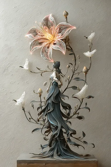 Midjourney Bot 更新时间:2026-01-10 00:06https://images.gogpt.vip/aigf/m_origin/20260109/77485/fxcaplvq0fqmqytf.png 光滑的流动线条在深色背景中蜿蜒而行,线条呈现出明亮的金色和蓝色渐变,闪烁的粒子在周围漂浮,营造出梦幻般的氛围。整体画面具有流动感,线条汇聚到远方一点,光的闪烁和颜色的对比增添了神秘感,展现出高科技和未来感的视觉效果 --ar 9:16 --v 7 --stylize 100 --iw 0.5