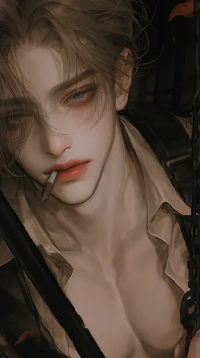 Midjourney Bot 更新时间:2026-01-10 00:02一位20多岁男性,发型是中分头发,头发分开,不遮住眼睛,他闭后唇,唇闭上,冷酷的眼神,中距离半身描写,近景照,可以看得到衣服,正面视角镜头,薄唇,第二人称视角,看起来就像面对面,宽肩窄腰,宽阔的肩膀,较大的脸,像倒三角一样锐利的脸型,锐利的脸庞,清晰看得到他的腰到头发近距离视角看,看着我,穿着背心,一根烟,背景不重要,正面视角,正面面部,暖色调,轻松活泼,半身肖像,成熟感 --ar 9:16 --style raw --stylize 559 --niji 6 --profile 8ungh8d cx4nfw4 9hol9qa --no No teeth,no real people,no oil painting style,no hair in front of the forehead covering the eyes,no lying down,no blurry picture quality,no hands,no objects in the nostrils