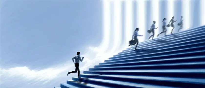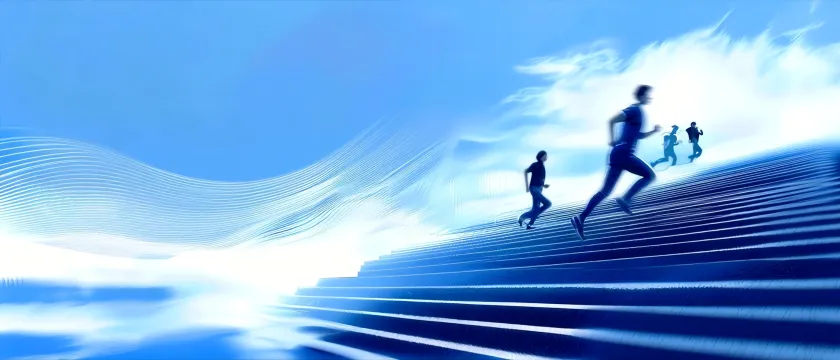 Midjourney Bot 更新时间:2026-01-10 00:04https://images.gogpt.vip/aigf/m_origin/20260110/2016552/9i01fug9elmhexto.png 右面的楼梯状细节一些,在右边的蓝色阶梯上重新生成多个正在往上奔跑的男女人物剪影,人物姿态自然动感,与背景的蓝色调协调统一,优化左边的波浪线条使其更加流畅优美,整体画面保持科技感和运动感,浅蓝色调要光感,高级感,增加一些科技感 超细节,电影质感,高分辨率,明亮的, --ar 21:9 --v 7 --c 8 --weird 175 --stylize 305 --iw 2