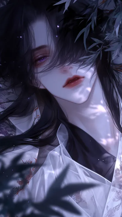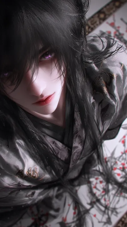 Midjourney Bot 更新时间:2026-01-07 00:15冷色,精致的细节,俯拍视角,一个黑色长发的成年男性,刘海挡住眼睛,m字刘海,有着深紫的眼睛,身穿浅紫色搭配白色的古代服饰,汉服,背景是一副山水画,从山水画里探出来,抬头看镜头,冷色调,超高清画质,清透感,柔和的光影,细节的发丝,二次元厚涂画风,32k画质处理 --ar 9:16 --style raw --stylize 100 --niji 6 --profile vgbkuea 34cb6jv enrcvog zcybdkq --no 怼脸拍,侧脸,伸手,倒挂金钩,反向构图
