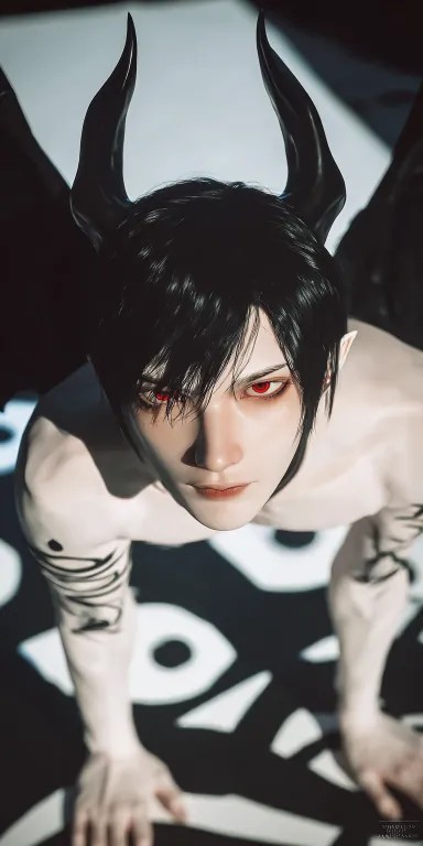 Midjourney Bot 更新时间:2026-01-07 00:14https://images.gogpt.vip/aigf/m_origin/20260106/2016538/8vj9cxijb8nhcce2.jpeg 一位男性恶魔,美少年,灵感源自Shin Megami Tensei的Eisheth,眼瞳是暗红色,黑色短发,黑色蝙蝠翅膀,头顶长着恶魔角,带着邪恶的笑容。他身体前倾,低头凝视着观者。特写镜头,低角度拍摄。电影级的光影效果,深邃的阴影,黑色背景,动漫风格的阴影处理,干净的渲染效果, CG动漫美学,哥特式与神圣的融合,既诡异又美丽。 --ar 1:2 --v 7 --weird 15 --iw 0.25