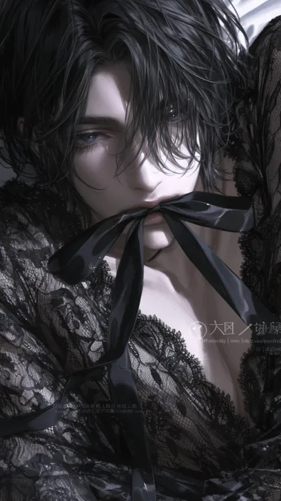Midjourney Bot 更新时间:2026-01-07 00:15冷色,精致的细节,俯视构图,俯拍视角,一个黑色短发的成年男性,刘海挡住眼睛,m字刘海,厚刘海,有着深蓝的眼睛,身穿蕾丝低领衬衫,脖子上系这一个黑色丝带蝴蝶结,嘴里叼着蝴蝶结丝带,躺在床上,,忧郁感,看镜头,冷色调,超高清画质,清透感,柔和的光影,细节的发丝,二次元厚涂画风,32k画质处理 --ar 9:16 --style raw --stylize 250 --niji 6 --profile zx722h4 34cb6jv enrcvog ttma6ml --no 怼脸拍,侧脸,伸手,倒挂金钩,反向构图,红色指甲,狗爪印