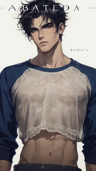 Midjourney Bot 更新时间:2026-01-05 00:26《博德之门》中的男性角色阿斯代伦,硬朗的脸,动漫美学风格,穿着衬衫网眼蕾丝crop top,浅海军蓝和浅灰色, --ar 9:16 --style raw --stylize 700 --niji 6 --no no