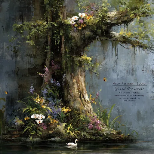 Midjourney Bot 更新时间:2026-01-06 00:06Building a Natural Secret Realm with Ancient Trees as the Core: The stout trunk is covered with moss and mottled textures, showcasing the sediment of time; clusters of yellow, pink, and white orchids bloom together, their delicate and translucent petals intertwining with hanging emerald bamboo and swaying slender leaves to create a richly layered plant community; two butterflies dance gracefully, infusing the tranquil scene with a sense of vitality. A hazy and ethereal atmosphere is created, where the overall composition merges the intricacy of meticulous brushwork with the freedom of expressive strokes, conveying the Eastern artistic conception that "every flower and every blade of grass is nature." Creating the Profound Beauty of Waterside Flower Scenery: The image is based on blue-green tones, with large areas of purple and blue flowers interwoven with white dandelions, forming a hazy and dreamlike plant landscape; in the lower left corner, a swan floats leisurely on the dark water surface, breaking the tranquility while adding liveliness; the background uses a blurring technique to shape a deep spatial sense of light and shadow interplay, with plant outlines appearing faintly between reality and illusion. The overall approach weakens specific forms through expressive techniques, enhancing atmospheric rendering, preserving the pursuit of essence in traditional Chinese painting while integrating the hazy poetry of modern visuals, conveying the tranquility and remoteness of natural life. Chinese meticulous heavy-color flower-and-bird painting, new meticulous Chinese painting, symbols of Chinese painting aesthetics, smooth lines, reasonable texture colors, dreamy, natural light, high definition, realistic style, rich details, national style, Zhang Daqian, Yang Yongliang, Wu Guanzhong, paintingism, Chinese ink wash. --ar 1:1 --v 7 --stylize 100 --iw 0.3