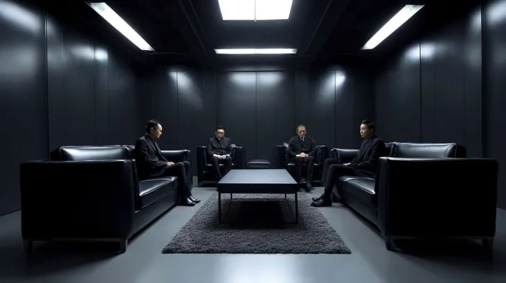 Midjourney Bot 更新时间:2026-01-06 00:08全景垂直俯拍角度展示的审讯室,光线黑暗压抑,唯一光源来自天花板顶灯光束,照亮一个简朴的黑色桌子、黑色沙发椅和空荡的墙壁,氛围严肃阴森。Gregory Crewdson风格,写实摄影风格,高清晰细节呈现逼真环境 --ar 16:9 --v 7 --style raw --stylize 100 --oref https://images.gogpt.vip/aigf/m_origin/20260106/2012027/5s2womgt2lssboew.jpg --ow 1000
