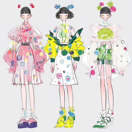 Midjourney Bot 更新时间:2026-01-06 00:08请帮我生成一个系列3套,以万物生长为主题的生物塑料为面料的服装效果图,要求手绘 --ar 1:1 --stylize 100 --niji 6 --sref https://images.gogpt.vip/aigf/m_origin/20260105/138219/dg8g7jnpdcxx7e0y.jpg