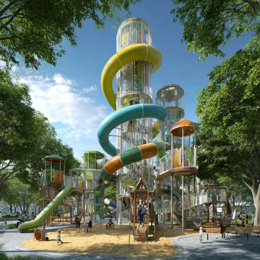 Midjourney Bot 更新时间:2026-01-06 00:10逼真圆形儿童乐园3D效果图,广角镜头视角从入口聚焦中心。孩子们在多彩现代攀爬塔和螺旋滑梯上欢乐玩耍。环绕小径游乐区:孩子们透明隧道中爬行,音乐墙上演绎木琴,幼儿沙坑挖沙。地面柔软防撞橡胶材质,明亮原色。家长坐外围木质长椅监护。茂密绿树提供阴凉,阳光明媚蓝天白云,充满活力氛围。高度细节8k分辨率,皮克斯动画风格,Octane渲染。 --ar 1:1 --v 7 --stylize 100