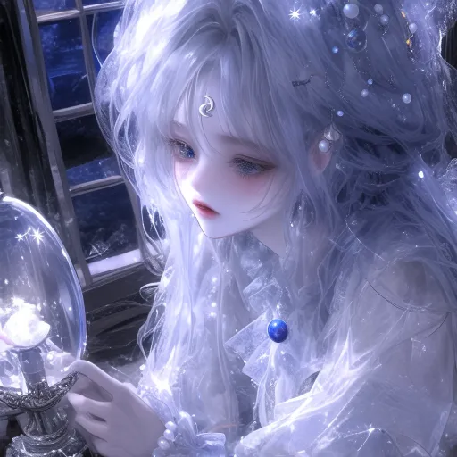 Midjourney Bot 更新时间:2026-01-05 00:08厚涂,动漫风格人物,面部纹理细腻,高饱和度调色板,肌肤纹理,伪厚涂高清,高清厚涂风格,磨砂质地,厚涂,厚涂,细腻厚涂,氛围感,细腻厚涂,特写镜头, 女性,一位贵族女性,面容甜美精致,腮红自然,唇色粉嫩。雾灰色长发以一枚精致的银质蟹钳发簪绾起,发簪上镶嵌着细小的珍珠与海蓝宝石,形成微缩的巨蟹座星图。鬓边点缀着几片珠母贝雕琢的月亮纹饰, 肌肤如月光浸润的珍珠般莹润,眼睑泛着淡蓝的薄晕。眼眸是沉静的灰蓝色,仿佛倒映着宁静的湖面,唇色是温柔的珊瑚粉 月白色丝绸长裙如水般垂坠,外罩一层绣有星点暗纹的灰蓝色软纱。腰间束着一条编织细带,带子上串着大小不一的乳白珍珠 双手捧着一个椭圆形的琉璃罩夜灯,灯座被设计成环绕的蟹钳造型,镶嵌着珍珠与青金石。 静坐在一处宁静阁楼的窗边。窗外是静谧的深蓝夜空与一弯新月 --ar 1:1 --stylize 800 --niji 6 --profile piyyh7z qq5e62f --no real person
