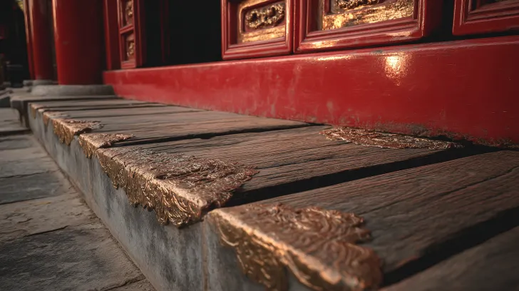 Midjourney Bot 更新时间:2026-01-05 00:10https://images.gogpt.vip/aigf/m_origin/20260105/2013829/d44a0v0guehc544l.png 基于宫殿门口的红木门槛的侧面特写,生成由宫殿外到宫殿内的红木门槛,仰视45°视角,聚焦门槛的磨损纹理木材自然裂纹、边缘铜质包角的氧化痕迹,门槛两侧衔接汉白玉石阶,光线为柔和的侧光,凸显石材的厚重质感,写实古风,细节丰富,电影级质感 --ar 16:9 --v 7 --stylize 100 --no 现代元素,卡通画风,比例失调,模糊不清,色彩鲜艳刺眼,巨大柱子,光线昏暗,杂物堆积