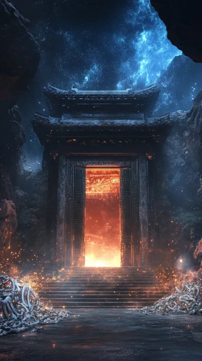 Midjourney Bot 更新时间:2026-01-05 00:14黑色神话:悟空风格,恶魔的气息弥漫,史诗级场景,中国阴曹地府最深处,压迫性岩层穹顶,仅有门自体发光。一扇顶天立地、异常宽阔宏伟的闭合大门,由两扇巨大的玄色琉璃板构成,门宽接近高度一半,厚重如山。门内部,清澈的幽青色光芒与炽烈的金色光芒,如同两条太极鱼般循环追逐、流转不息,将门体映照成半透明的光辉巨碑。大门矗立于漆黑的河流之中,河面如镜,倒映着双色光芒。河岸由无尽惨白骨殖堆积而成,散落巨剑与锁链。画面中心只有门与它的倒影,四周是吞噬一切的绝对黑暗,极致幽玄与神圣感,强对比光影,电影级构图,超详细,8K画质,古风玄幻风格,画面主要使用天青色和深红色风格,可怕的民间传说,全景拍摄,反应拍摄,风,色彩鲜艳,生动,高质量,超高,动态,(8k,原始照片),清晰的焦点,(疯狂的细节),高细节的照片,摄影现实主义,超现实主义,连续的角度,完美的构图,自然的几何形状,相机看着过去,闪闪发光的眼睛,昏昏欲睡的脸,模拟电影照片,薄雾和灰尘--第6.1节—第9:16节 --ar 9:16 --v 6.1 --stylize 100