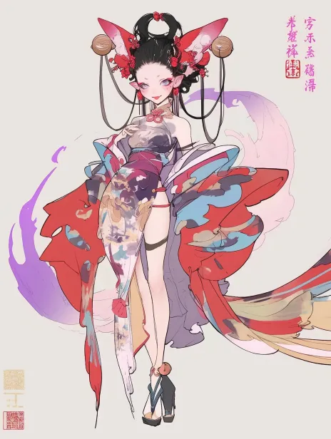 Midjourney Bot 更新时间:2026-01-05 00:20https://images.gogpt.vip/aigf/m_origin/20260105/2006574/mkyzigvd36l7t9tc.jpg https://images.gogpt.vip/aigf/m_origin/20251230/2006574/nx2gj7gk7e7u7ffj.jpg https://images.gogpt.vip/aigf/m_origin/20260105/2006574/nuh4a5mr2utva2vm.jpg https://images.gogpt.vip/aigf/m_origin/20260105/2006574/25gwvergzrzs7cam.jpg https://images.gogpt.vip/aigf/m_origin/20251230/2006574/hkut5m7r8a01f69p.jpg https://images.gogpt.vip/aigf/m_origin/20251230/2006574/4j9czkb1209pnyq1.jpg https://images.gogpt.vip/aigf/m_origin/20260105/2006574/kx88lsjgn77x9jux.jpg https://images.gogpt.vip/aigf/m_origin/20251230/2006574/3kxwcv6zyq7iny25.jpg 设计一个代表孽缘的女性角色,她机灵活泼,动作幅度大,她的整个元素为狐狸,她的发髻是由头发盘成的两只狐耳状,有铃铛、铜钱作为装饰,整体的颜色为紫到粉蓝渐变,想要带有现代时尚感的国风古典服饰,服装设计不要太繁复,需要空白背景 紫红,汉服,发带,xxxHolic,虫师,全身,角色设计,全身角色,三宅一生,蒂埃里·穆勒,郭培,布兰登·马布利,旗袍,中式服装,时尚风, --ar 3:4 --stylize 100 --iw 0.25 --niji 6 --sref https://images.gogpt.vip/aigf/m_origin/20260105/2006574/25gwvergzrzs7cam.jpg