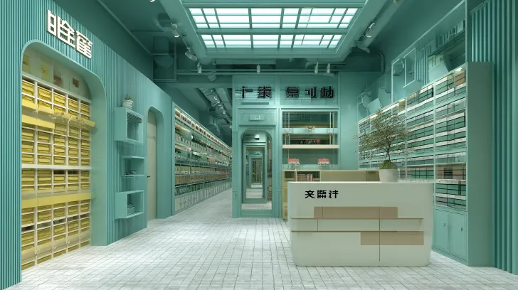 Midjourney Bot 更新时间:2026-01-02 00:16图书馆,复古未来风格,孟菲斯美学。模仿电影大师雅克塔蒂,模仿电影《芭比》空间和布局。门,白色,薄荷绿色,淡黄色。休息区,格子,模块化书架。横向长条形空间,平面场景,细节扩展 --ar 16:9 --v 7 --style raw --stylize 100