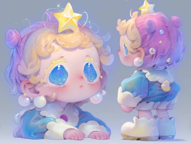 Midjourney Bot 更新时间:2026-01-02 00:21创作一个可爱萌系的女孩形象。正面视角中,女孩有着蓬松且色彩渐变的双马尾发型,发梢从淡粉色过渡到浅紫色,头顶佩戴着一颗闪耀的金色星星装饰和一朵柔美粉色花朵。她有着圆润的脸蛋,大大的蓝色水汪汪眼睛如同宝石般明亮,脸颊处带着淡淡的红晕,嘴角微微上扬似在微笑,双手交叠放在下巴下方,身穿蓝白相间带有蓬松泡泡袖的衣服,衣服上有精致的白色纽扣细节。 侧面视角展现其发型的层次感与立体感,马尾自然弯曲,耳朵上戴着小巧的珍珠耳钉,衣服的泡泡袖线条流畅。 背面视角能看到双马尾完整的造型,发丝纹理细腻,头上的星星和花朵装饰从后方看也别具美感,衣服背部有简洁的设计线条。 整体色彩柔和梦幻,材质表现上,头发要有柔软丝滑的质感,衣服像是柔软的棉质面料,配饰则闪烁着金属光泽。背景为简洁的浅灰色纯色背景,突出主体形象。 --ar 4:3 --stylize 125 --niji 6 --sref https://images.gogpt.vip/aigf/m_origin/20250410/1191773/dvnlsk6d6vbf2enc.jpg https://images.gogpt.vip/aigf/m_origin/20250411/1191773/4fr0dqcs4r50gbg4.jpg https://images.gogpt.vip/aigf/m_origin/20250610/1191773/3g3j4k5n8q2cb7kp.jpg https://images.gogpt.vip/aigf/m_origin/20250610/1191773/vult00rcjp8frtmn.jpg https://images.gogpt.vip/aigf/m_origin/20250410/1191773/kednn1mud779pffh.jpg https://images.gogpt.vip/aigf/m_origin/20250428/1191773/ix45jq3aw218tjzv.jpg https://images.gogpt.vip/aigf/m_origin/20250610/1191773/yltk4y68ig8gbfnh.jpg https://images.gogpt.vip/aigf/m_origin/20250610/1191773/l2jvmhyw31c0l0kr.jpg https://images.gogpt.vip/aigf/m_origin/20250428/1191773/xbi22lkxfre9yt5e.jpg --cref https://images.gogpt.vip/aigf/m_origin/20260101/1191773/b543if7r9k9vpw6m.jpg https://images.gogpt.vip/aigf/m_origin/20250510/1191773/z3ce3cnb65u52su3.jpg https://images.gogpt.vip/aigf/m_origin/20250610/1191773/o6kgtu2czbky43vu.jpg --cw 70 --sw 161 --sv 1 --profile o81quzk