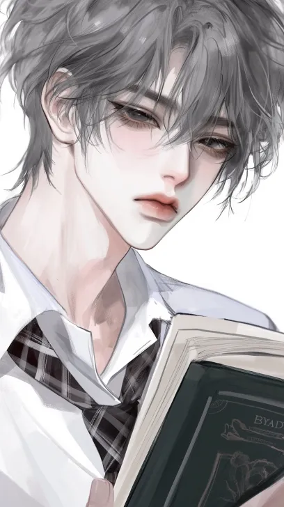 Midjourney Bot 更新时间:2026-01-01 00:24年轻男子,帅哥,手绘风。灰色短发,黑眸,垂眸,冷酷,白衬衫,格子领带,英伦风校服,手拿一本摊开的书。近距离 --ar 9:16 --style raw --stylize 100 --niji 6 --profile 3brp17e --no 胡茬