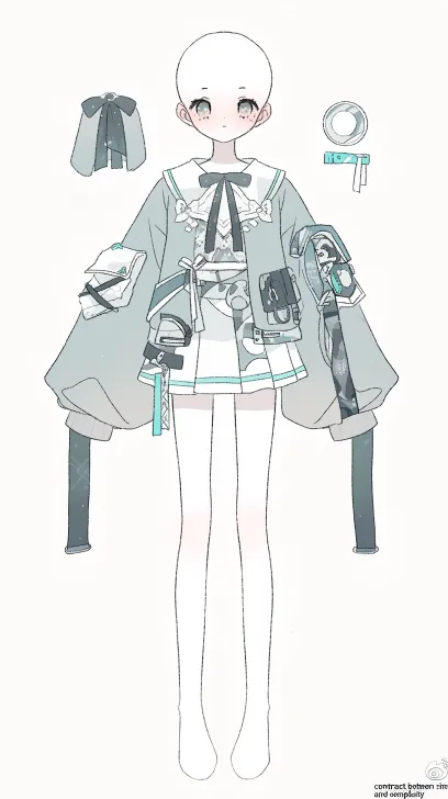 Midjourney Bot 更新时间:2026-01-01 00:25https://images.gogpt.vip/aigf/m_origin/20260101/1686785/2d0ehirduvy1jlg4.png 这套服设属于森系工装风融合学院风,以灰、白、浅青(薄荷绿)为核心配色,通过拼接、绑带、徽章等细节,将工装的酷感与学院的甜美、森系的清新结合,层次感与设计感拉满,具体拆解如下: 1. 内搭与领口: - 内层是白色学院风短款内搭,采用海军领(娃娃领)设计,领边嵌浅青细条纹,领口系黑色细缎带蝴蝶结,蝴蝶结下方垂白色褶皱花边与浅青流苏,柔化了工装的硬朗感; - 胸前纵向饰黑色交叉绑带,绑带节点缀浅青圆形装饰,形成视觉焦点,收腰设计凸显少女身形。 2. 外搭外套: - 外层为灰色宽松工装风外套,oversize版型打造随性慵懒的风格,衣身拼接浅青与白色不规则布块、立体口袋,袖口是超宽松的堆堆袖(喇叭袖),袖口以浅青包边并配黑色扣具,强化工装机能细节; - 外套左胸处贴卡通徽章/布贴,衣身还饰浅青刺绣线条与抽绳飘带,增添森系清新与童趣,打破纯色工装的单调。 3. 下装设计: - 白色短款百褶裙,裙边拼接浅青条纹,裙摆简洁利落,与上装的复杂拼接形成“繁简对比”,契合学院风的少女感; - 裙腰处嵌浅青宽边,与内搭、外套的浅青元素呼应,让整体配色更具统一性。 4. 配饰与腿部: - 右手腕饰黑色半指手套/护腕,护腕边缘嵌浅青装饰块,与外套的机能细节形成呼应; - 腿部搭配纯白色连裤袜,无任何装饰,简洁的白色中和了上装的色彩拼接与结构繁复,让视觉重心集中在衣装的设计细节上。 整体服设通过工装外套的硬朗、学院内搭的甜美、森系配色的清新混搭,打造出个性鲜明又柔和的二次元少女造型。 要不要我帮你根据这套服设,构思一个森系工装少女的人物性格与背景小传,让这个形象更有故事感? --ar 9:16 --stylize 100 --iw 2 --niji 6