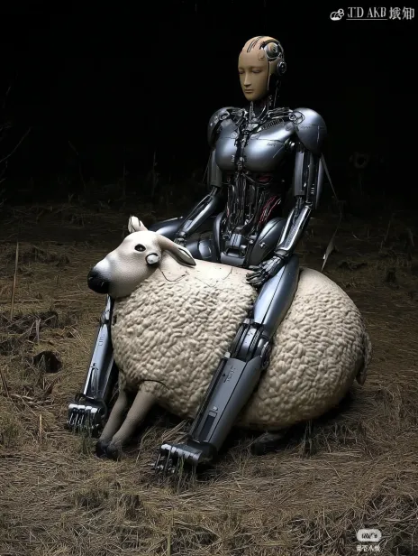 Midjourney Bot 更新时间:2026-01-02 00:00https://images.gogpt.vip/aigf/m_origin/20260101/1419498/02cl8djgj6mjvg2c.jpg 一个超现实且充满仪式感的场景,寂静而神圣。一只毛茸茸的白羊紧密地蜷缩并依偎在一只全机械的羊旁边。两者以亲密、紧密缠绕的姿势卧于地面,形成一个紧凑的环形构图。机械羊完全由冷冽的金属构成:拉丝钛合金板、哑光黑钢装甲,关节面为镜面抛光。其形态严格非人形:四足反关节机械框架,关节处裸露液压杆,跳动着蓝色能量管线。头部为几何切面风格的实心金属头骨,无眼,只有一道散发冷白光的锐利裂缝。背部为层叠的装甲板,如同折起的羽翼,覆盖精密激光蚀刻的电路纹路。每一处表面都凸显沉重、坚实、工业化的金属质感,带有强烈的高光与反射。背景为暗色冷调科技虚空,搭配硬边戏剧性灯光,超精细,工业级渲染,唤起一种未来神话与神秘美学的感受。 --ar 3:4 --v 7 --c 18 --weird 514 --stylize 100 --sref https://images.gogpt.vip/aigf/origin/20260101/1767282413001538_3.png https://images.gogpt.vip/aigf/m_origin/20260101/1419498/02cl8djgj6mjvg2c.jpg --oref https://images.gogpt.vip/aigf/m_origin/20260101/1419498/av7uen4ph1fl981q.jpg --ow 449