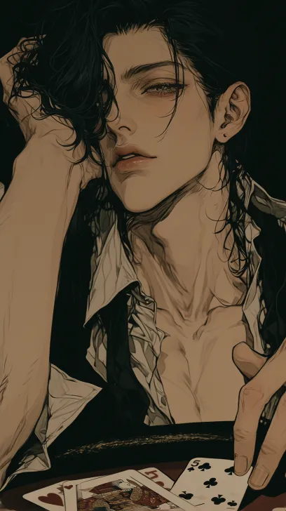 Midjourney Bot 更新时间:2026-01-02 00:03正视镜头,全身肖像,远景,远距离,赌桌上,镜头从上往下看去,生成一个帅气的男人,拿着牌,头发都用发蜡向后梳过去,穿着衬衫,解开几个扣子,表情慵懒懈怠,一手支着头,另一只手拿着牌,灯光聚焦再他身上,强烈的光影,动漫半厚涂画风,半写实,极致的细节 --ar 9:16 --stylize 1000 --niji 6 --profile tawbtd5 --no 抬头