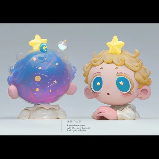 Midjourney Bot 更新时间:2026-01-02 00:03【雕塑风格的三视图设计稿,表现“烟火向星辰,所愿皆成真”主题的潮玩手办,比例1:1,适合盲盒系列。整体为半透明水晶质感人形,身体内部可见流动的烟火橙红与深蓝星尘光流,如愿望在体内孕育。 正面视图:人物呈站姿,微侧头,双手合十于胸前作许愿状,眼眸含笑,瞳孔中有微缩星河倒影。头发为渐变焰火丝缕,发尾向上飘散成柔和火舌状,与衣领烟火纹呼应。服饰为层叠式设计:外层为半透深蓝星光纱,内层为暖橙渐变烟火织纹,腰间系星轨束带。脚下为可旋转星象仪底座,盘面刻有黄道十二宫与流星纹路,一侧嵌有迷你烟花发射口。 侧面视图:可见身体水晶层的厚度与光流走向,焰火发丝沿头部轮廓形成流线型动势,衣摆因姿态自然垂落,露出底部星象仪齿轮结构。背后隐约可见未展开的焰火羽翼雏形(隐藏款特征),羽翼骨架为银白金属光泽,覆星光膜。 背面视图:后颈至背部有星芒状水晶脊线,象征愿望通道;星象仪背面为镜面星空板,映出前方景象,形成“看向自己愿望”的巧思。底部有盲盒编号与限量标识浮雕。 整体雕塑语言圆润饱满,兼具潮玩可爱与艺术收藏感,高光与透光处理突出水晶与星尘的梦幻氛围,背景留白凸显主体,三视图线条清晰,方便建模与涂装参考。】 --ar 1:1 --stylize 78 --niji 6 --sref https://images.gogpt.vip/aigf/m_origin/20250428/1191773/h7360gh1i70mydr8.jpg https://images.gogpt.vip/aigf/m_origin/20250410/1191773/dvnlsk6d6vbf2enc.jpg https://images.gogpt.vip/aigf/m_origin/20250411/1191773/4fr0dqcs4r50gbg4.jpg https://images.gogpt.vip/aigf/m_origin/20250410/1191773/kednn1mud779pffh.jpg https://images.gogpt.vip/aigf/m_origin/20250428/1191773/ix45jq3aw218tjzv.jpg https://images.gogpt.vip/aigf/m_origin/20250410/1191773/xkstea0ao62cg2ps.jpg https://images.gogpt.vip/aigf/m_origin/20250411/1191773/jg6o6b1qkv87x6sr.jpg https://images.gogpt.vip/aigf/m_origin/20250412/1191773/hea27qfpj9niaxfj.jpg --cref https://images.gogpt.vip/aigf/m_origin/20260101/1191773/b543if7r9k9vpw6m.jpg https://images.gogpt.vip/aigf/m_origin/20250410/1191773/dvnlsk6d6vbf2enc.jpg https://images.gogpt.vip/aigf/m_origin/20250410/1191773/kednn1mud779pffh.jpg https://images.gogpt.vip/aigf/m_origin/20250410/1191773/xkstea0ao62cg2ps.jpg https://images.gogpt.vip/aigf/m_origin/20250510/1191773/z3ce3cnb65u52su3.jpg https://images.gogpt.vip/aigf/m_origin/20250610/1191773/o6kgtu2czbky43vu.jpg https://images.gogpt.vip/aigf/m_origin/20250610/1191773/u7zjeb45pf0ew21g.jpg --cw 66 --sw 79 --sv 3 --profile o81quzk