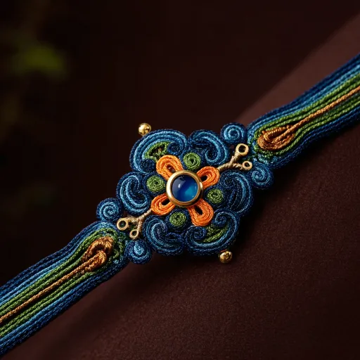 Midjourney Bot 更新时间:2026-01-02 00:05https://images.gogpt.vip/aigf/m_origin/20260102/2010651/odl5b3m40h2nekki.jpg 精美的手工手链,采用蓝色和绿色的线材编织而成,中央装饰着一颗闪耀的蓝色宝石,周围有精致的金色和橙色线条环绕,形成优雅的图案。手链的两侧延伸出流畅的线条,增加了动态感和艺术性。整体设计展现出丰富的色彩对比和民族风格,背景为深色,突出手链的细节和独特魅力。 --ar 1:1 --v 7 --stylize 100 --iw 0.25