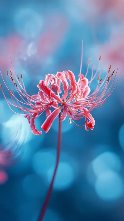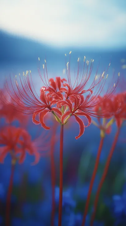 Midjourney Bot 更新时间:2026-01-02 00:08电影中焦特写镜头,完整展现5、6株红色彼岸花(曼珠沙华)。花朵形态完整优美,花瓣在低角度的金色侧逆光下呈半透明,纹理与丝绸质感细腻,纤细的花蕊清晰可见。背景是深邃虚化的幽蓝花海与忘川河水,浅景深营造出强烈的空间隔离感。画面充满电影灯光,戏剧性光影,空气中可见丁达尔效应,超高清细节,照片级真实,仿佛使用ARRI摄像机拍摄,虚幻引擎渲染,具有电影色彩分级,古风玄幻风格,画面主要使用天青色和深红色风格,可怕的民间传说,全景拍摄,反应拍摄,风,色彩鲜艳,生动,高质量,超高,动态,(8k,原始照片),清晰的焦点,(疯狂的细节),高细节的照片,摄影现实主义,超现实主义,连续的角度,完美的构图,自然的几何形状,相机看着过去,闪闪发光的眼睛,昏昏欲睡的脸,模拟电影照片,薄雾和灰尘--第6.1节—第9:16节 --ar 9:16 --v 6.1 --stylize 100