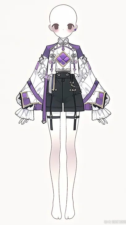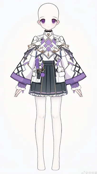 Midjourney Bot 更新时间:2026-01-01 00:03https://images.gogpt.vip/aigf/m_origin/20260101/1686785/gadf5yhimfft0t3p.png 这套服设属于科幻机能风融合偶像学院风,以白、紫、黑为主调,搭配金色金属装饰与软萌毛球细节,硬朗的机能结构与甜美元素碰撞,打造出酷甜兼具的二次元风格,具体拆解如下: 1. 颈部配饰:黑色细窄项圈,无多余装饰,简约的冷感设计为整体机能风奠定基调,同时拉高颈部线条。 2. 内搭上衣: - 白色修身短款衬衫,领口做褶皱花边处理,柔化了机能风的硬朗; - 胸前纵向排列三颗紫色纽扣,纽扣周围有浅紫色纹路装饰,形成视觉焦点,衣身收腰设计凸显身形,与外搭的宽松形成对比。 3. 外搭外套: - 短款宽松机能风外套,主体为白色与淡紫色拼接,肩部、袖身有黑色绑带+金属扣的机能结构设计,强化酷感; - 袖口是紫色包边搭配金色金属环扣,衣身饰金色流线型纹路(科技感元素),袖身还点缀白色毛球,柔化了机械感,增添少女气息; - 外套为不对称/层次感剪裁,衣摆短至腰上,露出内搭与腰封,提升整体造型的利落度。 4. 腰部与下装: - 黑色宽腰封,中央嵌金色星芒/菱形金属装饰,腰封边缘以紫色包边,收束腰线的同时呼应上装配色; - 下装是黑色短款百褶裙裤,裙摆边缘紫色包边,裙身点缀金色小星芒装饰,裙裤版型兼顾灵动性与实用性,契合偶像+机能的混搭风格。 5. 腿部搭配:纯白色连裤袜,无任何装饰,简洁的白色中和了上装的复杂拼接与色彩碰撞,让视觉重心集中在衣装的结构与细节设计上。 整体服设通过机能绑带、金属装饰、毛球等元素的混搭,结合紫黑白金的配色,将科幻机能的酷感与偶像学院的甜美融合,塑造出个性鲜明的二次元少女形象。 要不要我帮你根据这套服设,构思一个科幻偶像的人物性格与背景小传,让这个形象更有故事感? --ar 9:16 --stylize 100 --iw 2 --niji 6