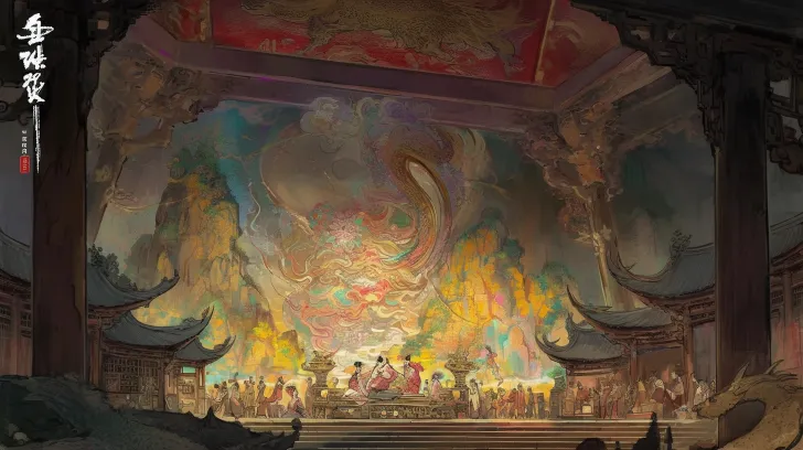 Midjourney Bot 更新时间:2025-12-30 00:06视觉中心颜色明快一点,场景宏大一点,有古代宫廷夜宴的热闹感。生成多个神仙过山海的画面,画面极其繁复,聊斋,细节多。场面宏大,有震撼感。 --ar 16:9 --stylize 100 --niji 6 --sref https://images.gogpt.vip/aigf/m_origin/20251229/2007348/213o6ummbdzk1qu6.png https://images.gogpt.vip/aigf/m_origin/20251229/2007348/qilb97lx3o4a439d.png --sw 619