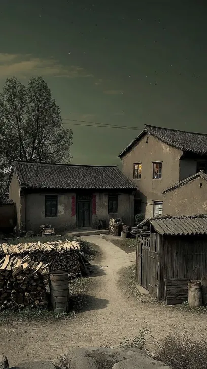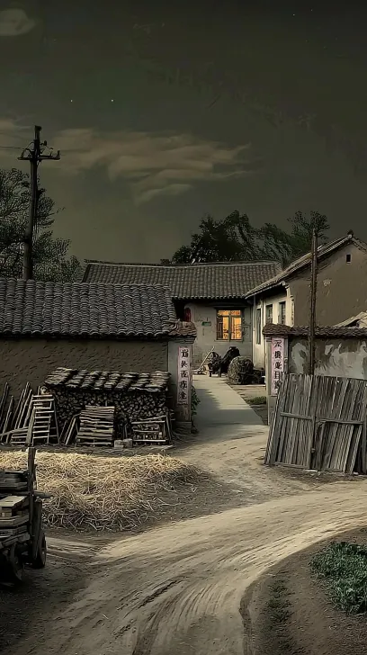 Midjourney Bot 更新时间:2025-12-30 00:08https://images.gogpt.vip/aigf/m_origin/20251230/2007408/ahakxg4f6u9bc3a0.jpg 中国80年代农村夜晚, 北方农村院落, 土坯房,灰色瓦屋顶, 低矮围墙, 木柴整齐堆放在墙边, 泥土小路通向院门, 院门敞开, 屋内昏黄的白炽灯光透出, 远处零散农舍灯光, 夜空阴沉,星光微弱, 环境极其安静, 没有明显人物, 真实生活气息, 怀旧纪录片风格, 真实摄影质感, 电影级自然光影, 柔和暗部, 低饱和度,低对比度, 自然胶片颗粒, 轻微噪点, 老胶片扫描感, 4K,高细节,写实摄影 --ar 9:16 --v 7 --stylize 100 --iw 0.25 --sref https://images.gogpt.vip/aigf/m_origin/20251230/2007408/ahakxg4f6u9bc3a0.jpg --oref https://images.gogpt.vip/aigf/m_origin/20251230/2007408/ahakxg4f6u9bc3a0.jpg --ow 1000