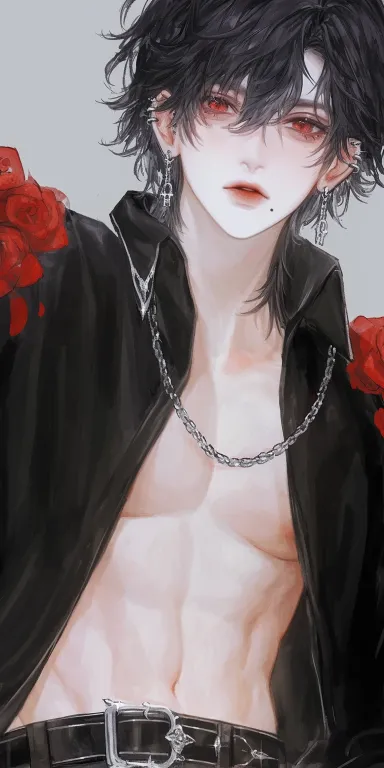 Midjourney Bot 更新时间:2025-12-30 00:08https://images.gogpt.vip/aigf/m_origin/20251029/1703502/4ca3trjl8sa0ya3e.JPG 长相绝美的男生,漂亮的眼睛,长睫毛,精致的五官,丹凤眼,微分碎盖,耳链,挑染,嘴角痣,链子在腹肌上,红色的眼睛,皮带,没穿上衣 --ar 1:2 --c 54 --stylize 100 --iw 0.3 --niji 6 --sref https://images.gogpt.vip/aigf/m_origin/20251029/1703502/4ca3trjl8sa0ya3e.JPG --sw 488 --profile m7276999585023655947 --no 不要花