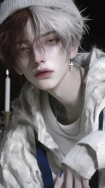 Midjourney Bot 更新时间:2025-12-29 00:17https://images.gogpt.vip/aigf/m_origin/20251228/1671358/vzfmy72wni2sblrb.jpg 半身照,肖像照。年轻深红色色短发男子,桀骜不驯的感觉,男子,以白色系为主的静奢风,饰品,穿着毛衣外套,带着针织帽,极度光影和细节,背景图中有晚宴背景,冷酷高贵,五官细腻清澈,浅粉色的嘴唇,修长的眼睛,纤细细腻的手指,浓密的长睫毛,角度拍摄,少年感,轻熟系,写实风,单人男,绝美眼睛,长睫毛,精细笔触,柔和光影,细腻渲染,高分辨率,设计感,清透感,细节修复,极致细节,渲染,光线追踪,精细的细节,超高清,高细节,细腻渲染,高分辨率,动漫风格,kKpop偶像脸,8k FHD OC渲染,纤细手指,小众, --ar 9:16 --style raw --c 5 --stylize 1000 --niji 6 --profile spr1pcg 3o2az9b --no water
