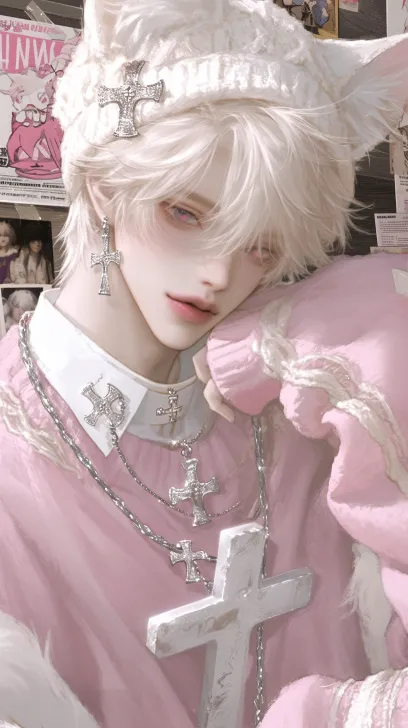 Midjourney Bot 更新时间:2025-12-29 00:17一幅高质量、半写实风格的动漫插图,描绘了一位格外俊美的东亚男孩。画面以戏剧性的特写镜头呈现,视角从高处向下俯视(鸟瞰视角)。他的面容精致细腻,光滑无瑕,美得令人瞩目,五官精致,眼神深邃,透出柔和的明暗效果。他面带温和、自然的微笑,更显亲切魅力与情感温暖。左眼下方有一块柔软的矩形眼周护理垫。他戴着一顶带有细微猫耳造型的针织帽,两色分层发型——柔粉底色带淡白高光——自然勾勒出脸颊轮廓。一根小巧的金属发夹在他的发丝间闪耀,既增添了一丝引人注目的亮点,又不破坏整体美感。仅能看见他服装的上部:领口及图案装饰着他那件超大号的淡粉色长袖上衣,上面点缀着微妙的白色哥特式十字架和链状图案,以及层叠的银色十字架项链,折射出柔和的光泽。背景为室内空间,墙上贴满海报和另类主题装饰,画面柔和模糊,以突出人物面部为重点。光线柔和、自然且明亮,强调细腻的皮肤质感,营造出强烈的视觉张力。采用厚涂半动漫风格绘制,色彩丰富饱和,细节精致,渐变平滑,具有表现力深度,构成一幅生动、氛围感十足的肖像画。--宽高比 9:16--原始图像--配置文件 rxmwu6l--风格化 1000 --ar 9:16 --style raw --stylize 1000 --niji 6 --profile rxmwu6l --no 仰头,纹身,女生,女性,娃娃脸,鼻钉,长发,妖艳,挑染,美丽,阴暗