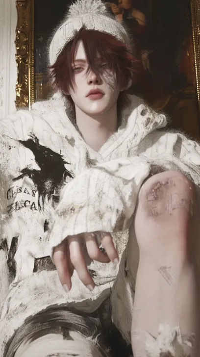 Midjourney Bot 更新时间:2025-12-29 00:15https://images.gogpt.vip/aigf/m_origin/20251228/1671358/vzfmy72wni2sblrb.jpg 半身照,肖像照。年轻深红色色短发男子,桀骜不驯的感觉,男子,以白色系为主的静奢风,饰品,穿着红色毛衣外套,带着针织帽,极度光影和细节,背景图中有晚宴背景,冷酷高贵,五官细腻清澈,浅粉色的嘴唇,修长的眼睛,纤细细腻的手指,浓密的长睫毛,角度拍摄,少年感,轻熟系,写实风,单人男,绝美眼睛,长睫毛,精细笔触,柔和光影,细腻渲染,高分辨率,设计感,清透感,细节修复,极致细节,渲染,光线追踪,精细的细节,超高清,高细节,细腻渲染,高分辨率,动漫风格,kKpop偶像脸,8k FHD OC渲染,纤细手指,小众, --ar 9:16 --style raw --c 5 --stylize 1000 --niji 6 --profile spr1pcg 3o2az9b --no water
