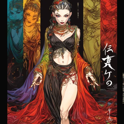 Midjourney Bot 更新时间:2025-12-29 00:19生成女装服装设计草稿,要10个一样模特穿着相似服装,要求有中国原始部落风,上衣抹胸,下装不规则裙摆,颜色带红与黑和金色,飘逸感,力量感,动漫风,神话风,带枯树枝元素,和女魃相关 --ar 1:1 --stylize 100 --niji 6 --sref https://images.gogpt.vip/aigf/m_origin/20251228/1135943/c28w2u5u7huuu6k6.png