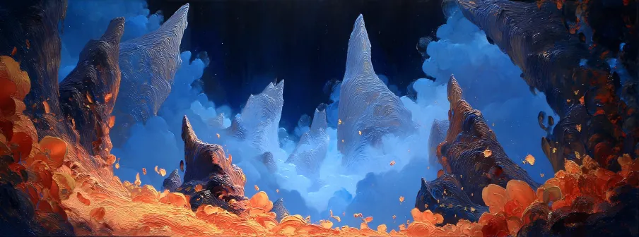 Midjourney Bot 更新时间:2025-12-29 00:20https://images.gogpt.vip/aigf/m_origin/20251228/1905958/stx6vpo7de7on1pp.png 请生成一幅充满祥和宁静气氛的石林场景,整个画面呈现出一种神秘、梦幻的氛围。主要色调以蓝色和橙色为主,创造出强烈的色彩对比,蓝色的天空与橙色的土地、岩石相互映衬,形成鲜明的视觉冲击力。石林的岩石形状独特且壮丽,错落有致地矗立在广袤的土地上,岩壁上有微弱的光辉映照,呈现出梦幻般的效果。石林周围的环境宁静祥和,空气清新,透着一种神秘的静谧感。 背景中的天空是深邃的蔚蓝色,柔和的蓝色渐变渗透到远处,远方的山峦模糊且富有层次感,仿佛深处梦境的边界。地面则呈现出温暖的橙色调,土地上有细微的沙砾和草丛,周围的石林底部有小溪流过,水面反射着天空和石林的光影,增添了一丝流动感。 这幅画的整体氛围融合了宁静与力量,色彩上的强烈对比强化了画面的视觉冲击力,同时也营造出一种奇异的、仿佛不属于现实的感觉,带给人一种进入神秘境界的体验。 --ar 46:17 --v 7 --style raw --c 3 --weird 423 --no Character,树,苔藓