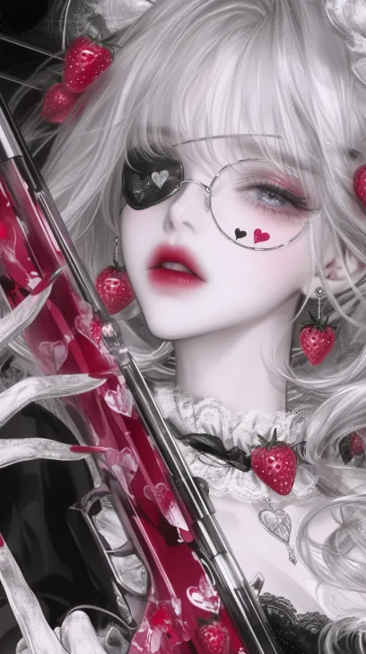 Midjourney Bot 更新时间:2025-12-28 00:09动漫女孩,白色短发,齐刘海,头发上有粉色草莓心形发饰,佩戴白色眼罩,穿着带有草莓图案的粉色系女仆风格服饰,手持粉色枪械,身处粉色系的带有 Paw 印和爱心元素的科技感场景中,整体风格甜酷 --ar 9:16 --style raw --c 7 --stylize 777 --niji 6 --profile t8cy1vq