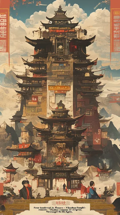 Midjourney Bot 更新时间:2025-12-28 00:15超现实主义概念海报,大召寺的建筑轮廓剪影内,以蒙太奇手法融合了从古代建寺到现代游览的历史场景叠影。画面中心,一个融合的图形将传统蒙古文字与干枯豪放的汉字毛笔笔触结合在一起,汉字部分清晰可辨,内容为“四百年一瞬,伊克召长青”。 画面底部正中,是系列总标题,以干净现代的衬线字体清晰地写着“召庙古今”四个字。 图像由一金一红双细线边框框住。色调从棕褐过渡到彩色。 --ar 9:16 --stylize 100 --niji 6
