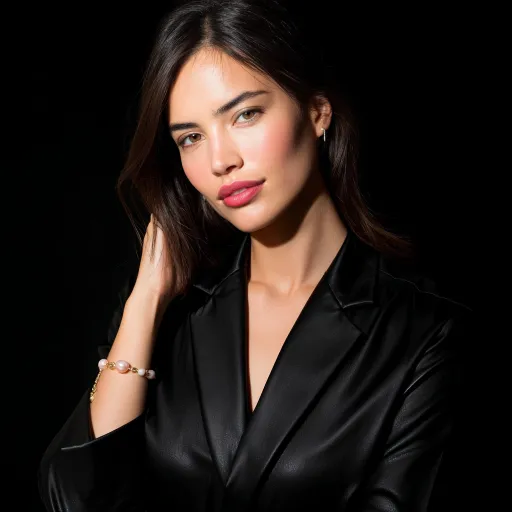 Midjourney Bot 更新时间:2025-12-28 00:19展示手部与手腕的女性模特,手部姿态为轻抬、手指微曲搭在颈部附近,露出佩戴手链的手腕;妆容干净,黑发自然垂落。 主角:就是我发的参照图片 服装:黑色简约质感上衣(如丝质/棉质黑色衬衫,V领设计) 背景:纯黑色简约背景,无多余杂物,突出主体; 光线:柔和的侧光/柔光,突出珍珠的光泽与皮肤质感,营造高级氛围感; 3. 色调:整体偏冷调,黑白色系为主,突出珍珠的温润质感。 --ar 1:1 --v 7 --stylize 100 --oref https://images.gogpt.vip/aigf/m_origin/20251228/2004772/5k62m07xn05p8uts.png --ow 400