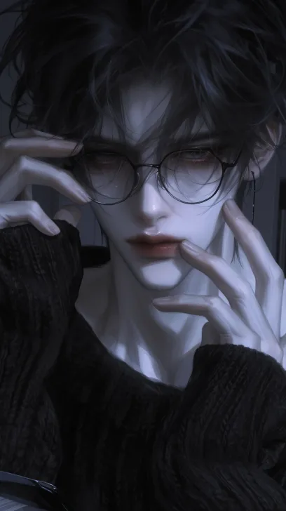 Midjourney Bot 更新时间:2025-12-28 00:19半身像,黑发年轻男性,凌乱碎发造型,黑框眼镜戴在鼻梁上,手指轻搭在眼镜镜框上,苍白皮肤,穿着黑色宽松针织衫,暗调室内背景,细腻的面部轮廓与手部刻画,冷冽疏离氛围,8K高清 --ar 9:16 --style raw --stylize 609 --niji 6 --profile v1ybt2r eptqdrd o3un67l --no watermark,text,european,old,胡子,仰头