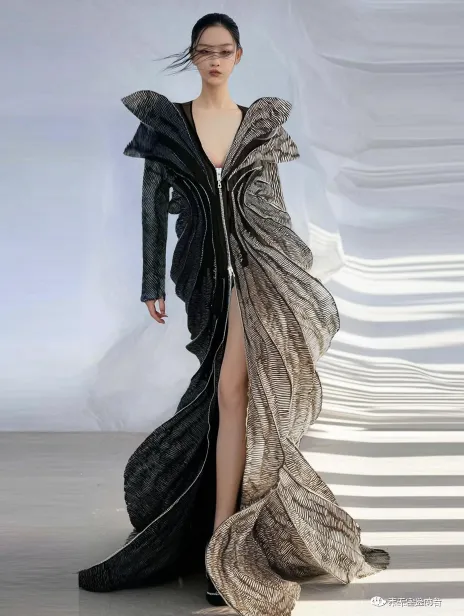 Midjourney Bot 更新时间:2025-12-27 00:21https://images.gogpt.vip/aigf/m_origin/20251227/2003465/8pb8q8sbyvvvcgxo.jpeg https://images.gogpt.vip/aigf/m_origin/20251226/2003465/5etb64js0ja96pca.jpeg https://images.gogpt.vip/aigf/m_origin/20251226/2003465/qgf5jexno88kwc07.jpeg https://images.gogpt.vip/aigf/m_origin/20251226/2003465/60rd55snv3ra2790.jpeg https://images.gogpt.vip/aigf/m_origin/20251226/2003465/mmctabjbgqu0jkk6.jpeg https://images.gogpt.vip/aigf/m_origin/20251227/2003465/xokrgyrfsb5jcb8e.jpeg https://images.gogpt.vip/aigf/m_origin/20251227/2003465/2mbsnpk9rsd3b3v2.jpeg https://images.gogpt.vip/aigf/m_origin/20251226/2003465/8jwrty6ysyz6aazk.jpeg https://images.gogpt.vip/aigf/m_origin/20251226/2003465/cjeskdfht8ttvct2.jpeg 时装设计:一位真人模特身着以蛇蜕皮为灵感的不对称裙装,体现蜕变元素,里面修身剪裁不对称长裙,外层抽象流线型飘逸廓形展现流动曲线,衣服表面布满流线型不规则拉链,拉开后露出底层光滑蛇蜕面料再造,与表层偏坚硬面料形成强烈质感对比,白色背景突出立体轮廓。Iris van Herpen设计风格,Octane渲染,全身正面视角,柔和的自然光线,超高清细节,未来主义视觉,生物灵感与动态优雅结合。 --ar 3:4 --v 7 --weird 13 --stylize 80 --sref https://images.gogpt.vip/aigf/m_origin/20251226/2003465/igcbqozf98iz8g00.jpeg https://images.gogpt.vip/aigf/m_origin/20251226/2003465/cjeskdfht8ttvct2.jpeg https://images.gogpt.vip/aigf/m_origin/20251226/2003465/zopq1jzudxqdyo5x.jpeg https://images.gogpt.vip/aigf/m_origin/20251226/2003465/8jwrty6ysyz6aazk.jpeg https://images.gogpt.vip/aigf/m_origin/20251226/2003465/60rd55snv3ra2790.jpeg https://images.gogpt.vip/aigf/m_origin/20251226/2003465/5etb64js0ja96pca.jpeg https://images.gogpt.vip/aigf/m_origin/20251226/2003465/qgf5jexno88kwc07.jpeg https://images.gogpt.vip/aigf/m_origin/20251227/2003465/8pb8q8sbyvvvcgxo.jpeg --sw 139